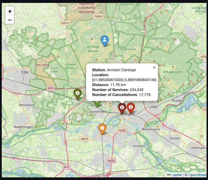 • Visualize the five closest train stations on any point selected on the map, by using the Streamlit Folium component.